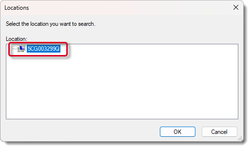 - The very first location in the list is the local workstation. Make sure the first location is selected and select OK.