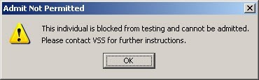 If the exam sponsor allows a blocked candidate to test, work with VSS to admit the candidate.